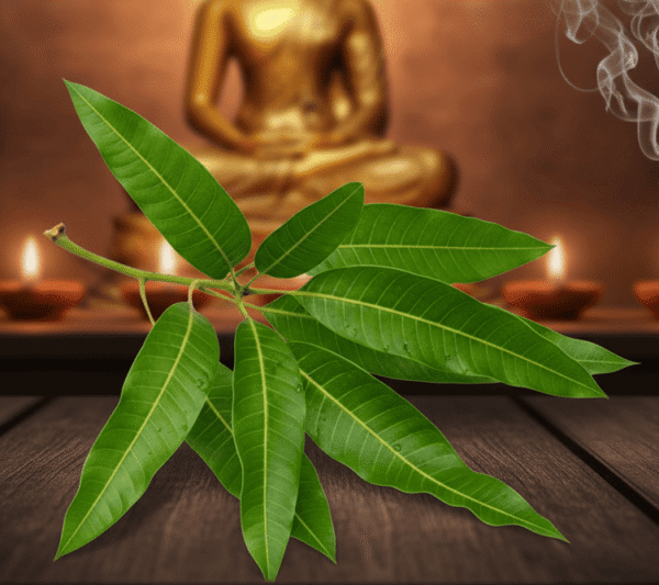 🌿 Kalash ke liye hum dete hain fresh aam ke patte danti ke sath — bilkul pooja ke liye tayyar!